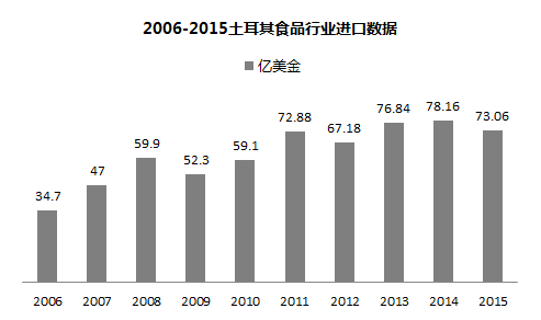 土耳其食品進(jìn)口量穩(wěn)定上升,2015年進(jìn)口額達(dá)到了10年前的2.1倍