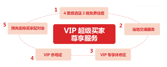 通過VIP 資格審核的專業(yè)買家可享有住宿、交通等多項(xiàng)服務(wù),進(jìn)一步確保大宗買家、異地買家到會(huì)采購(gòu),提升展商的現(xiàn)場(chǎng)貿(mào)易成交額。
