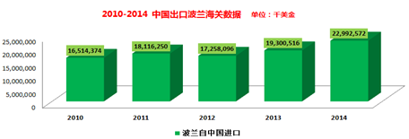 2015年波蘭貿(mào)易進(jìn)口總額為3841.57億美元,其中,中國(guó)對(duì)波出口536.4億美元,同比去年增長(zhǎng)約3.8%,中國(guó)成為波蘭第二大進(jìn)口來(lái)源國(guó)。