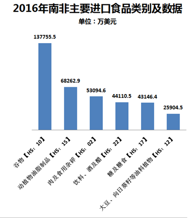 谷物是南非最主要的進(jìn)口食品,2016年進(jìn)口額達(dá)到13.78億美元。糧食谷物除了作為當(dāng)?shù)鼐用竦闹魇惩?,還會(huì)有相當(dāng)一部分被加工成為食用粉及粉制品(面粉、淀粉等,以及面食、面包等成品)。