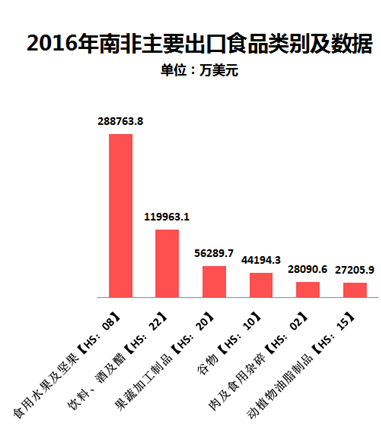 據(jù)聯(lián)合國(guó)商品貿(mào)易數(shù)據(jù)庫(kù)統(tǒng)計(jì),2016年南非食品貿(mào)易額達(dá)到140.6億美元,同比2015年(123.3億美元)增長(zhǎng)14.1%。其中食品進(jìn)口額為59.4億美元,同比增長(zhǎng)27.9%;而食品出口額高達(dá)81.2億美元,同比增長(zhǎng)5.7%。