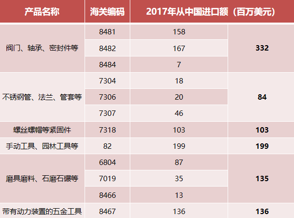 “中國制造”閥門、軸承、密封件等五金產(chǎn)品在巴西市場占據(jù)一定市場!2017年,巴西從中國進口的主要五金產(chǎn)品中,閥門、軸承、密封件等進口額最多,達3.31億美元,排名第一,占比33.5%。手動工具、園林工具等進口額排名第二,達1.99億美元,占比20.2%。帶有動力裝置的五金工具進口額位列第三,達1.36億美元,占比13.7%。