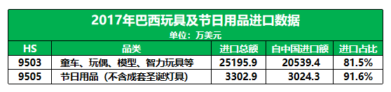 巴西對(duì)進(jìn)口玩具和節(jié)日產(chǎn)品的需求巨大,2017年進(jìn)口總額高達(dá) 2.85億美元;