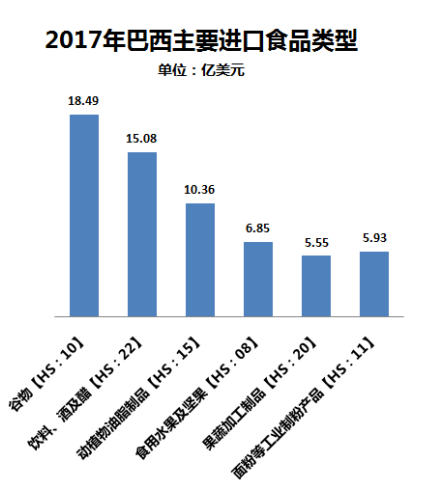 而在巴西主要迚口食品中,排名第一位的谷物,2017年迚口規(guī)模達18.49億美元。同時,由于巴西國內(nèi)對面食產(chǎn)品及烘焙食品有巨大的需求,這也導(dǎo)致相當一部分的谷物會經(jīng)當?shù)毓S加工成面粉、淀粉等工業(yè)制粉產(chǎn)品。