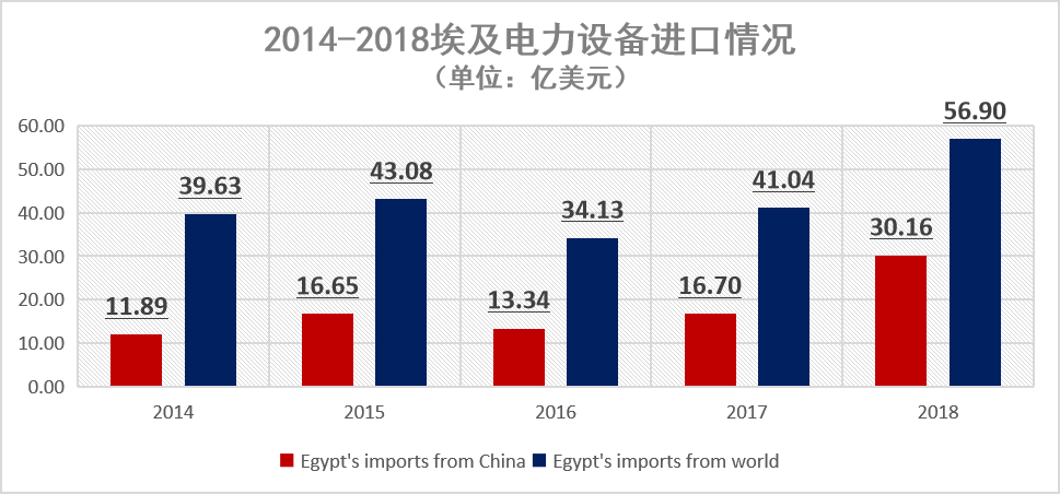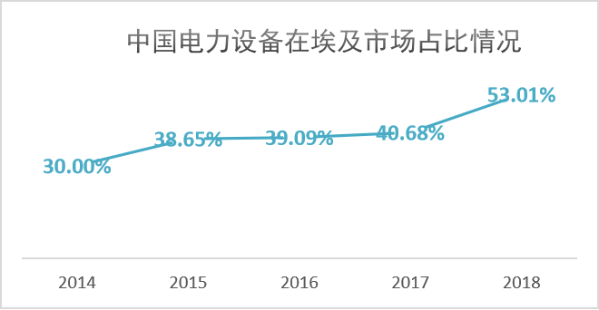 2018年中國電力設(shè)備在埃及市場占比創(chuàng)5年來的新高,占比達(dá)53.01%,較2014年增長了70.7%。目前中國已成為埃及主要電力設(shè)備的第一進(jìn)口來源國。中國電力產(chǎn)品在價(jià)格和功能上也更適應(yīng)埃及目前的國情。