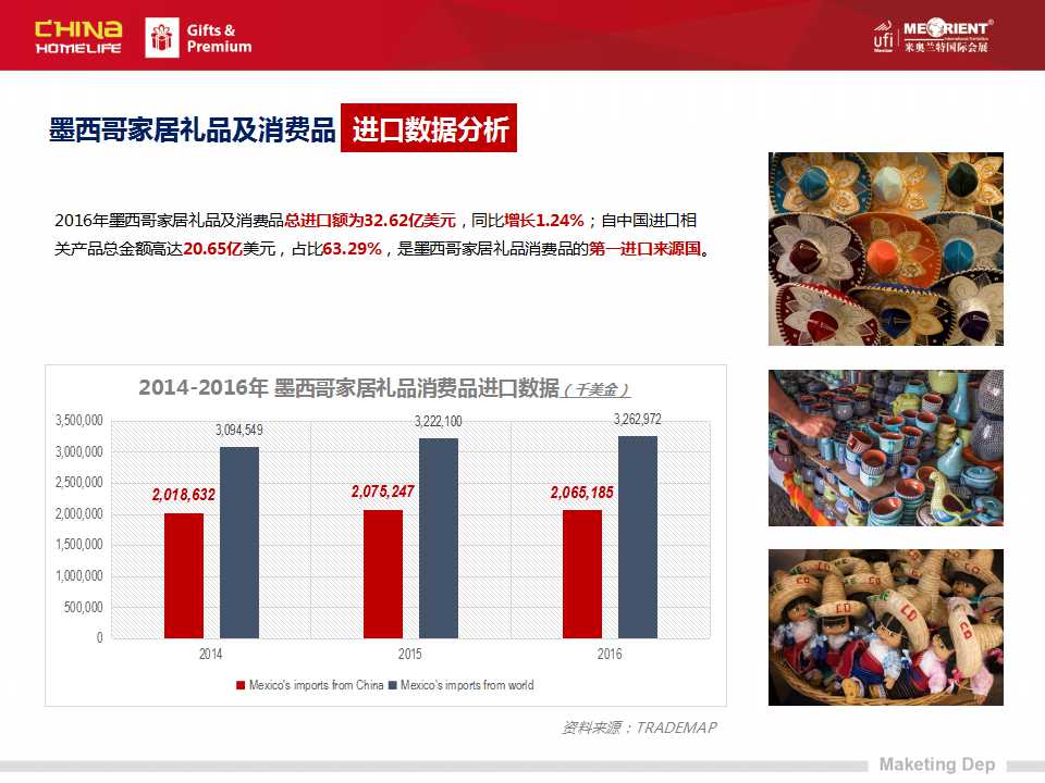 首屆中國(墨西哥)家具及配件博覽會于2017年6月13日-15日在墨西哥城展覽中心成功舉辦。此次在墨西哥首次開展旗開得勝,中國(墨西哥)貿(mào)易博覽會已成為墨西哥最有影響力的展會之一。本屆展會吸引到來自墨西哥當(dāng)?shù)丶爸苓吤绹⑽5伛R拉、伯利茲、洪都拉斯、牙買加等國的專業(yè)買家15,390位,為760多家中國展商服務(wù),展會規(guī)模達16,000平方米,現(xiàn)場成交額高達2,365萬美元。墨西哥展在247在線平臺上的總流量達到1,881,787,在線詢盤數(shù)達8,446個,通過247在線邀約來參展人數(shù)達到1,033人。墨西哥展會同期,247在線平臺在展會現(xiàn)場推出安卓版APP,買家現(xiàn)場紛紛現(xiàn)在APP,為買家和展商溝通交流更提供便捷。
