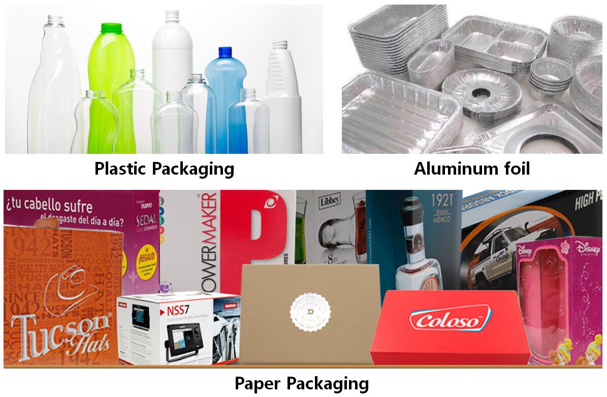 3、包裝材料 ——塑料包裝材料、紙制包裝材料、金屬包裝材料、玻璃包裝材料及包裝輔料;